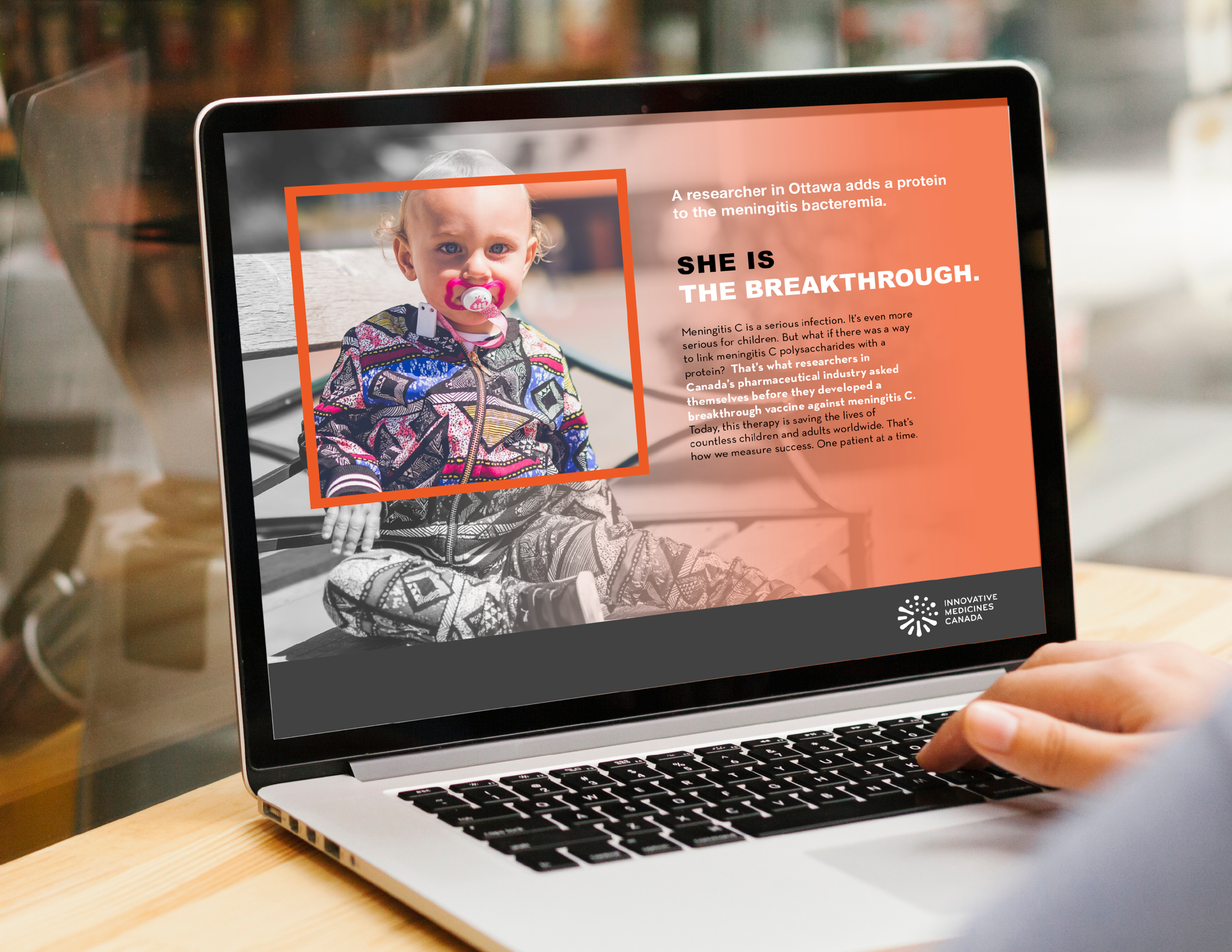 Let’s face it - Big Pharma has a bad rap. In this pitch for Innovative Medicines Canada (IMC), we explored how IMC could initiate a change in public perception by shifting the communication strategy from one that glorifies research & science-based achievements, to one that is patient-centric, seeking an emotional response and a more direct connection with patients.